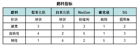 综合以上知识,几种常见的磨料指标如下: