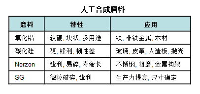 另外,结合上节课的知识重点,磨宝为大家总结了常见磨料的性能,供大家参考: